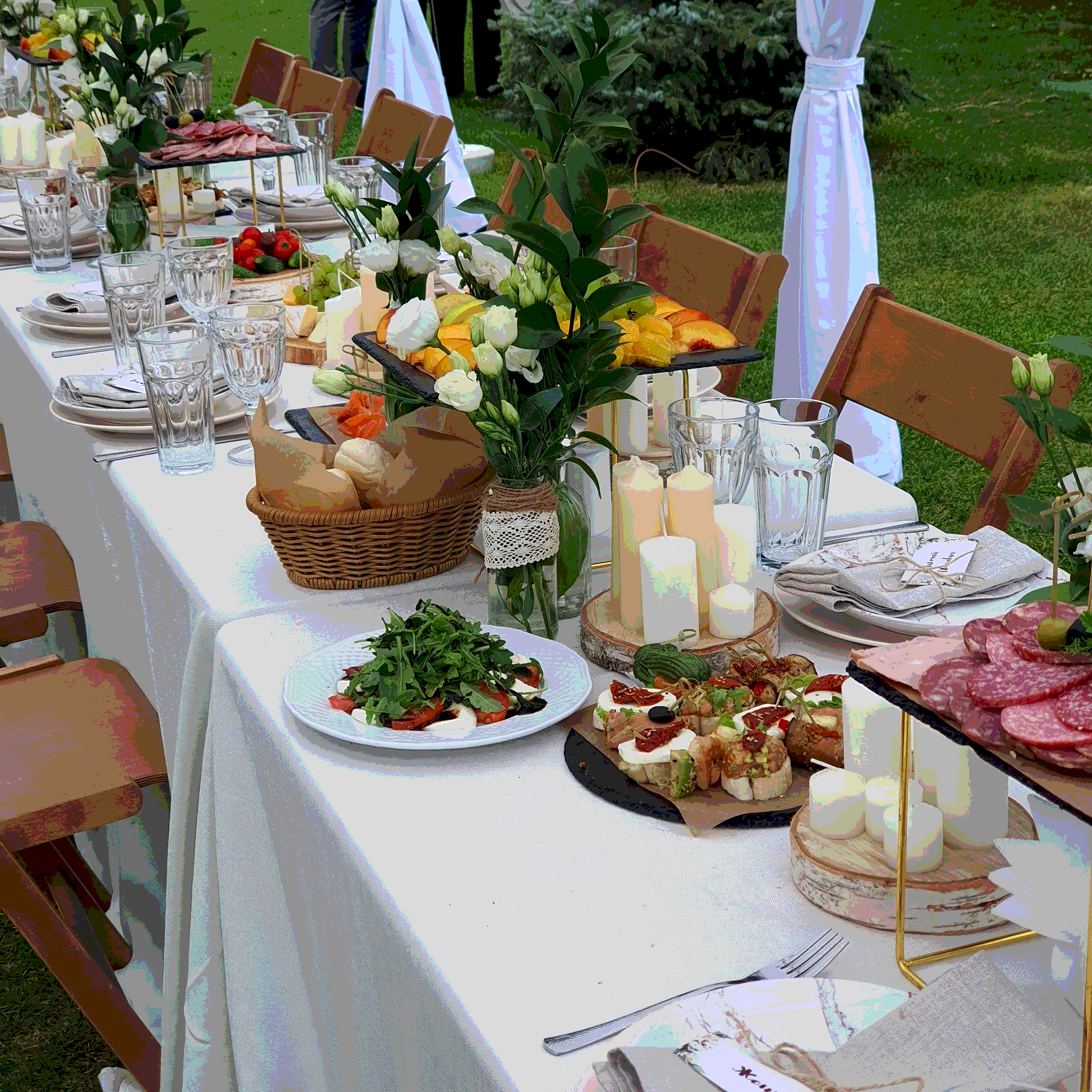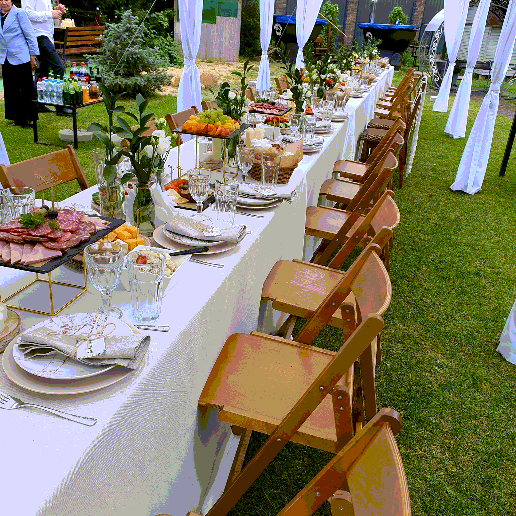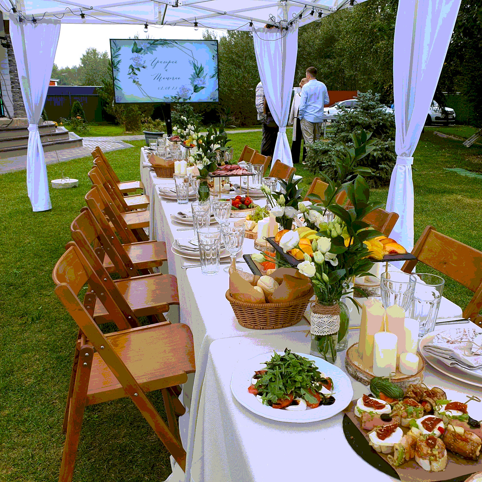Задача Организовать уютную свадьбу на открытом воздухе для 40 гостей: красивая сервировка и оформление, вкусная еда и сервис без суеты для пары и их близких. Что сделали